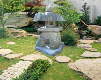 石の自然な割れ肌をいかし、製作した灯ろうを野面灯ろうといいます。古くからある技法で、職人の感性が際だつ作品となります。ご案内のものは、在庫がある中から3点を選別しました。いずれも自然んお風合いを活用するため、ふたつと同じものはありません。風格ある庭づくりに最適、洋風の庭にも迫力ある表情をつくりだします。