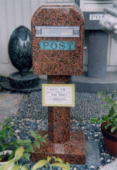 モダンな赤みかげ石のポストです。岡崎ストーンフェアで発表以来、人気の高い作品となりました。