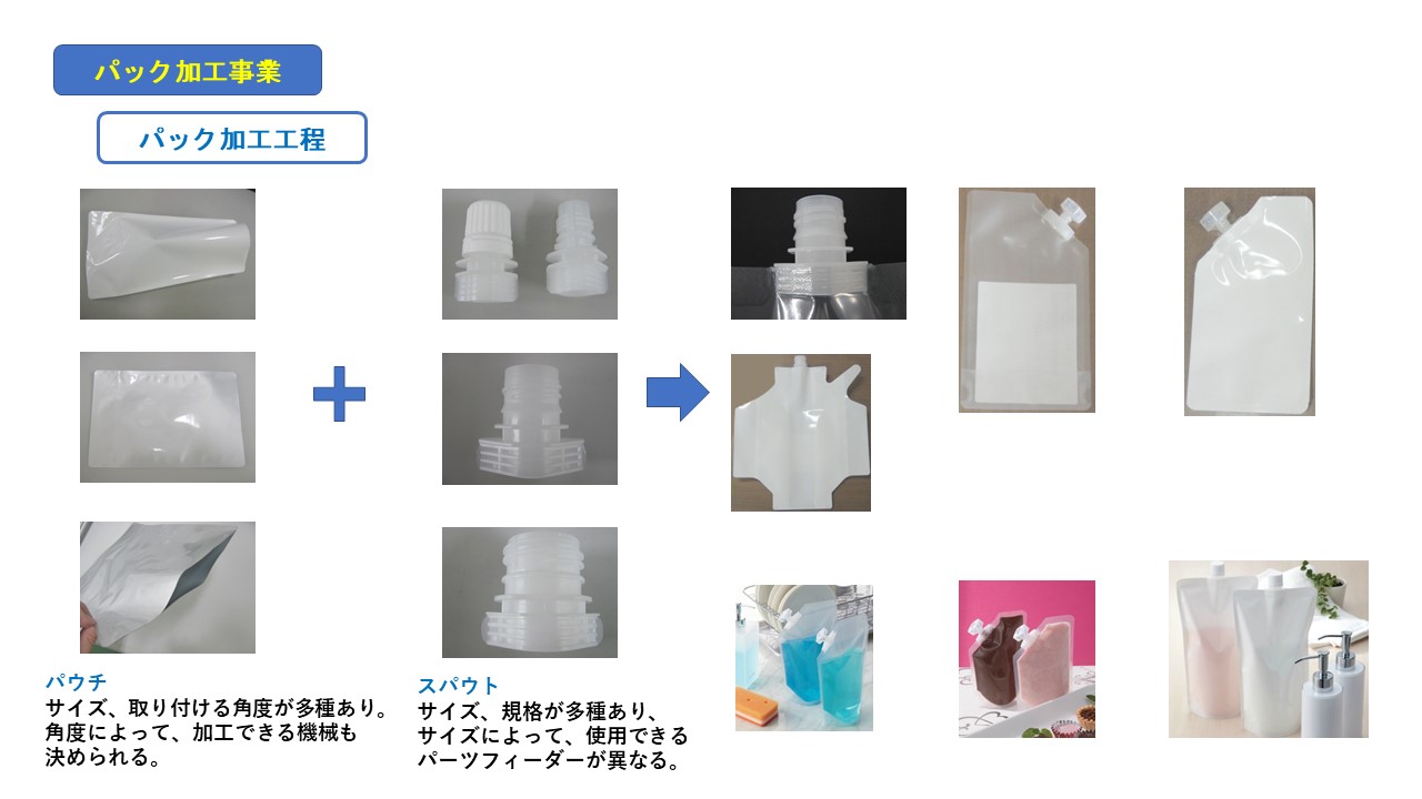 | 事業内容 | ワイヤーハーネス製造 スパウト装着加工によるパック製造 |