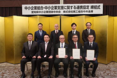 3月25日(水)本会は、愛知県内の中小企業組合及び中小企業(以下「組合等」)に対する支援を強化するため、株式会社商工組合中央金庫と「愛知県内中小企業組合・中小企業支援に関する基本協定」を締結しました。